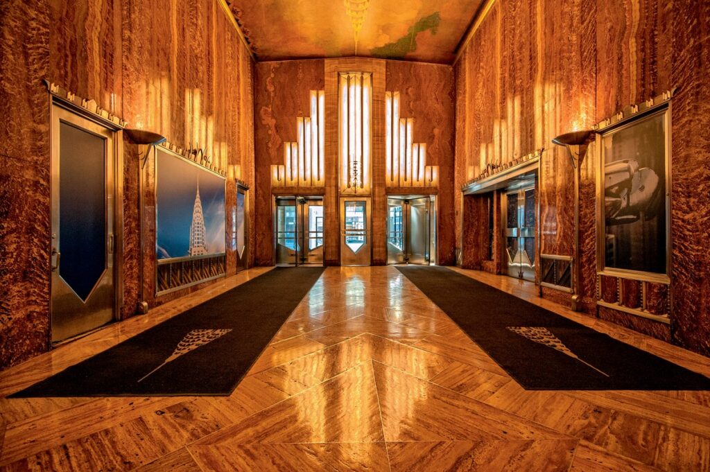 Em 1925, ao longo de cinco meses, a mostra de Paris reuniu expositores de mais de 20 nações. Era uma época de competição econômica entre elas, o que contribuiu para a visão elitista associada ao art déco. Os Estados Unidos não participaram como expositores do evento, mas designers e comerciantes americanos o visitaram e levaram de volta um olhar renovado ao seu país, que até então não tinha exemplos de art déco, segundo Steve Knight. “A adoção entusiasmada do novo estilo levou a construções icônicas como os edifícios Barclay-Vesey, o Chrysler e o Chanin, em Nova York”, diz o arquiteto. Com grandes corporações e famílias prósperas financiando as obras, exemplares art déco se espalharam da costa leste à oeste do país. “Utilizavam-se materiais luxuosos como mármore, bronze, níquel-prata e aço inoxidável. À medida que o estilo evoluiu na década de 1930, o design foi simplificado, expressando movimento, velocidade e eficiência. Isso aconteceu, em certa medida, por necessidade, com a quebra da bolsa de valores em 1929 e a subsequente depressão que atingiu grande parte do globo”, afirma. O distrito histórico de art déco em Miami, na Flórida, com seus predinhos estilizados em tons pastel, é um famoso exemplo dessa vertente mais contida, porém não menos interessante.