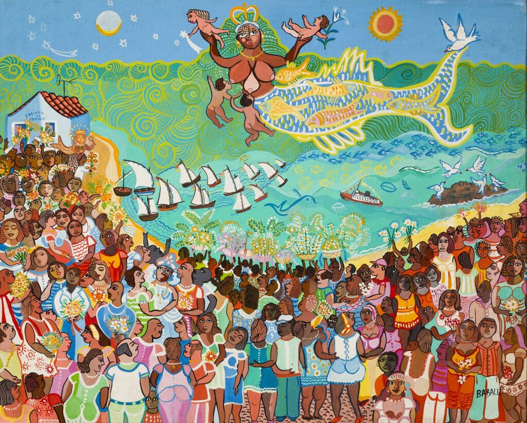 É nas paredes que o projeto revela seu ponto mais alto. O acervo de obras foi construído ao longo de anos em antiquários, feiras, leilões e viagens. Sobre a base escura da sucupira, os autores compuseram uma galeria que demonstra como organizar molduras de escalas e naturezas diferentes sem perder coesão. Entre os destaques estão a fotografia Tesão no Forró do Mario Zan (1977), de Nair Benedicto, referência do fotojornalismo brasileiro, e a tela Natureza-morta Com Moringa, Jarra e Castiçal (1973), de Arnaldo Barbosa.
