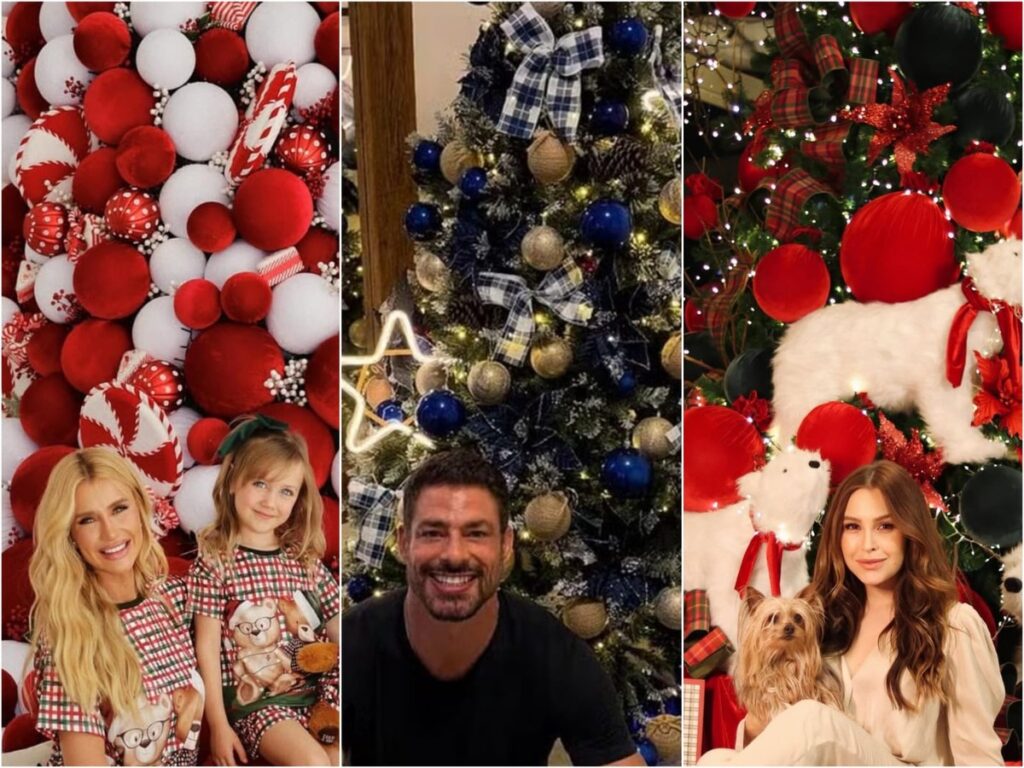 Grávida, a atriz, cantora e apresentadora Mariana Rios escolheu um enorme urso de veludo vermelho como guardião da árvore de Natal. Ela e o noivo, o empresário Juca Diniz, escolheram decorar o pinheiro com bolas douradas. No top da árvore, uma estrela luminosa com o nome do filho que esperam, Palo.