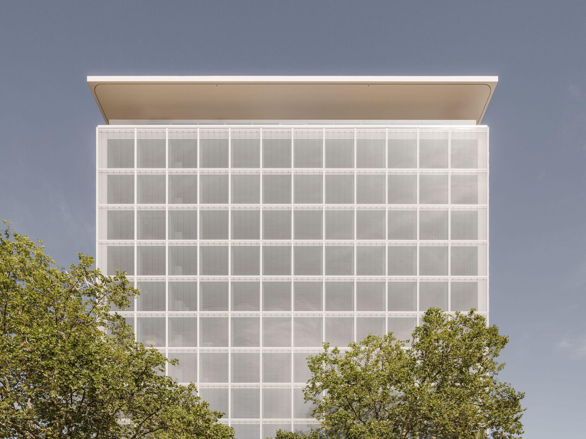O cálculo dos níveis de transparência e reflexão do vidro, assim como as medidas adicionais para aumentar a proteção das aves, foi realizado em consulta com Fachstelle für Vogelfragen — o centro especializado em questões ornitológicas das autoridades de parques e jardins de Basileia. As fachadas norte e sul distinguem-se por grandes janelas em forma de diamante, dispostas verticalmente, inspiradas nas diagonais das escadas localizadas nas extremidades norte de ambas as torres. Revestidas com 24.000 azulejos de vidro fundido em formato triangular, as superfícies ganham profundidade e vivacidade graças à curvatura das peças, que refletem o clima e a luz ao longo do dia. O arranjo dos azulejos, estruturado em losangos formados por oito triângulos, foi gerado aleatoriamente por computador, criando combinações únicas e dinâmicas em toda a fachada.