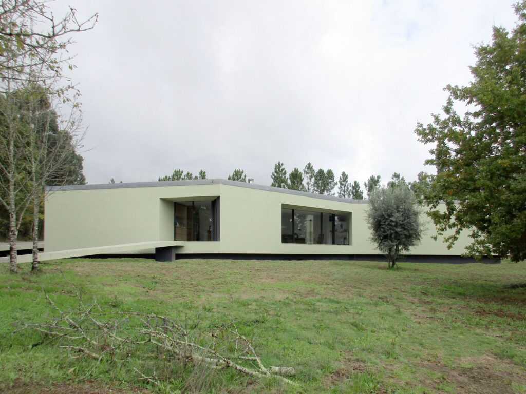 Um novo caminho para a sustentabilidade. Fornecemos uma nova estratégia aos sistemas passivos: a forma da fachada que produz sombras e que permite a ventilação natural. Paralelamente, utilizámos estratégias que já são utilizadas noutros projetos, mas que fazem todo o sentido neste caso: isolamento de cortiça no sistema ETICS (porque também é perfeito no caso de incêndios florestais no verão, tão problemáticos em Portugal), reutilização da água da chuva (a água está a tornar-se mais escassa em Portugal e é por isso a criação de um grande tanque no exterior). Também temos painéis solares que reduzem o consumo de energia da rede elétrica. Em geral, utilizámos os recursos naturais com extremo cuidado. O consumo de energia da casa é de 12 kWh/m2/ano. A avaliação do carbono durante todo o ciclo de vida é de 1.140 kgCO2 e/m2 . Esta estratégia prova que este caminho é uma nova e ótima opção para um desenvolvimento sustentável.