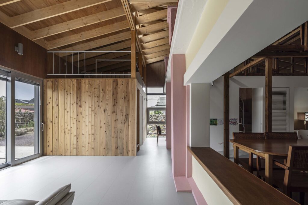 Descrição enviada pela equipe de projeto. Uma casa rural construída em 1965 na Jeju Island, Coreia do Sul. O proprietário, que há muito tempo trabalha com artesanato utilizando materiais de rejeito coletados do mar, propôs não demolir a casa antiga, mas reutilizá-la. O projeto começou aceitando essa ideia: considerar a casa antiga como um recurso para criar um novo espaço.