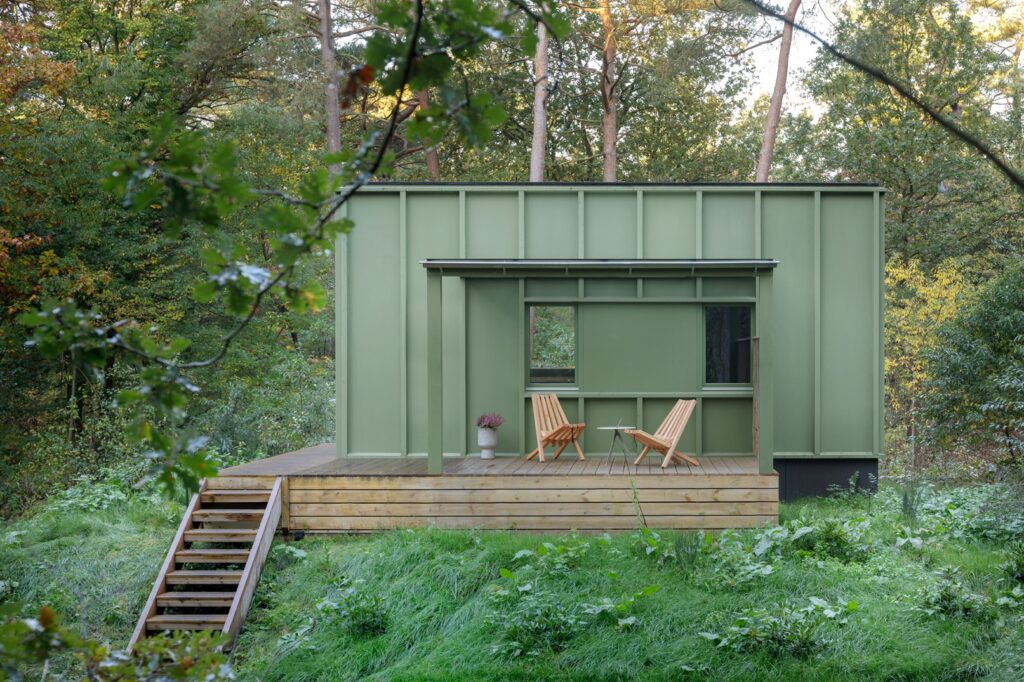 Escondido em meio à natureza, no parque RCN de Noordster, próximo à cidade de Dwingeloo, na Holanda, este pequeno refúgio pode parecer discreto à primeira vista, mas revela interiores surpreendentes. Com apenas 20 m², o projeto assinado pelo escritório i29 architects foi concebido como uma casa de férias refinada e sustentável, que propõe “uma visão contemporânea do morar em pequena escala”.