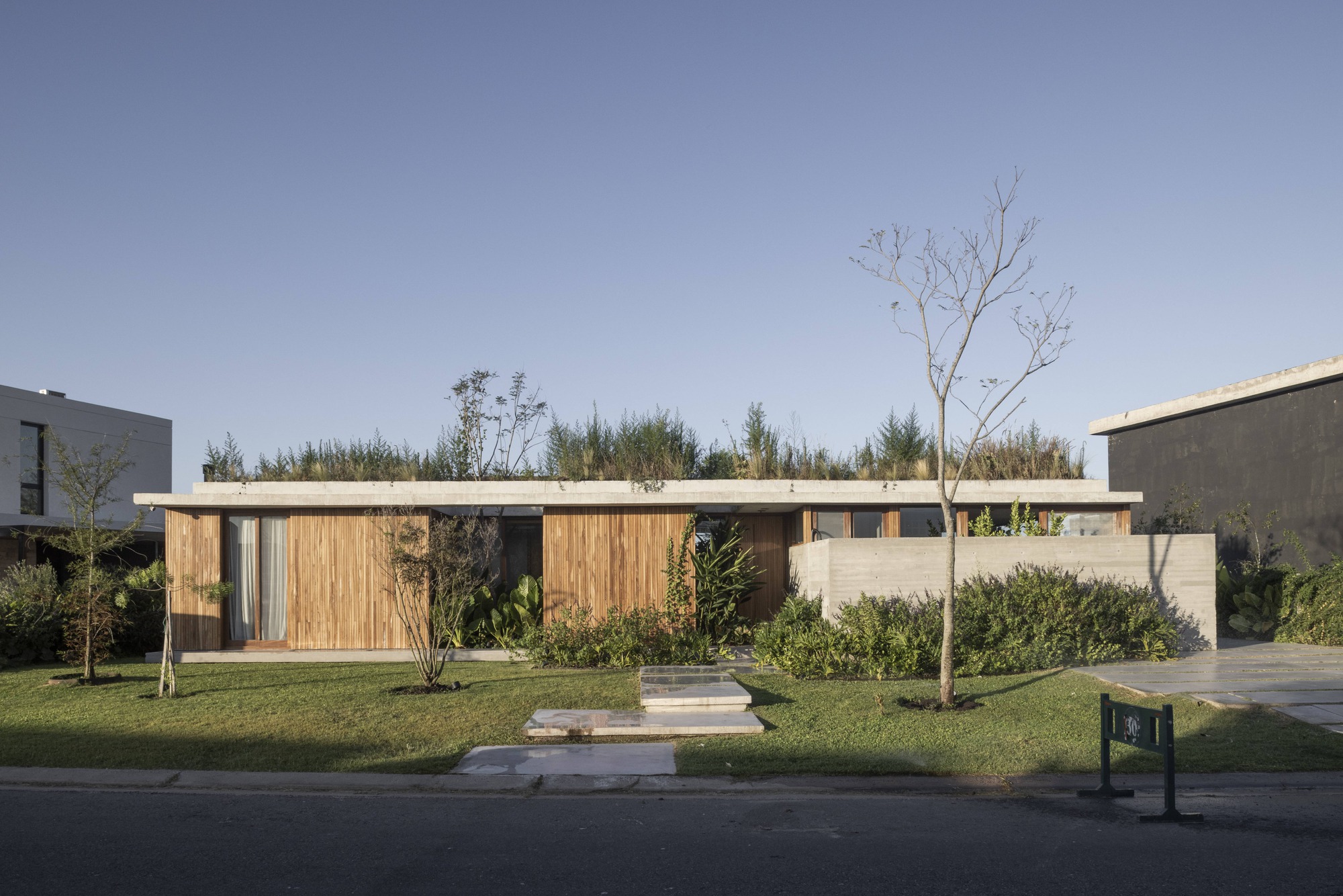 Esta casa, situada ao lado da Reserva Natural del Pilar, busca ser um refúgio, um suporte material e estrutural para a construção de ninhos, promovendo uma forte simbiose entre arquitetura e paisagem. O projeto surge como um grande parque elevado, com o objetivo de restaurar a vegetação nativa e atrair diversas espécies para ajudar a reconstruir o ecossistema degradado de pântanos e pradarias. A casa, projetada com atenção à sua orientação e à incidência solar, é organizada em torno de três pátios principais que abrigam diferentes espécies de árvores nativas, atravessando a cobertura.