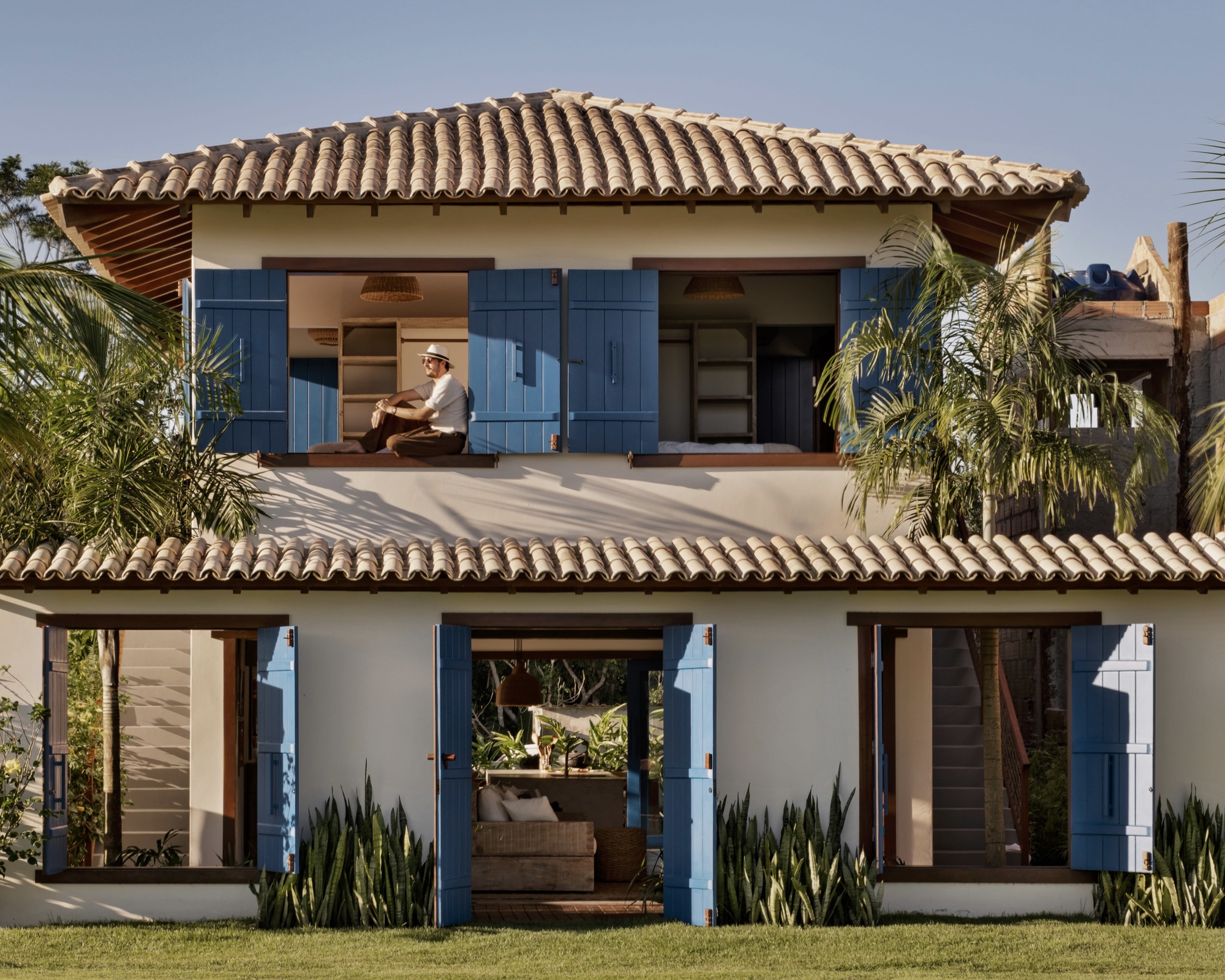 Descrição enviada pela equipe de projeto. No litoral sul da Bahia, entre Trancoso e Caraíva, o escritório W.A.M.V Arquitetura assina uma residência compacta e eficiente que alia soluções técnicas inteligentes a uma estética afetiva. A casa foi pensada para ser uma morada de veraneio de baixa manutenção, com 120m² de área construída em um terreno de 230m².
