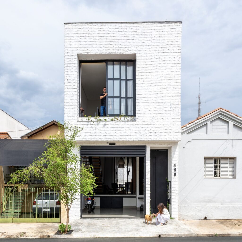 Descrição enviada pela equipe de projeto. Construída em um lote urbano, em um bairro tradicional com lotes pequenos e estreitos de Piracicaba, esta casa compacta foi erguida no lugar de uma antiga construção térrea. Feita de alvenaria de tijolos armados, a antiga casa teve que ser demolida por motivos estruturais, por não suportar a estrutura de um pavimento superior.