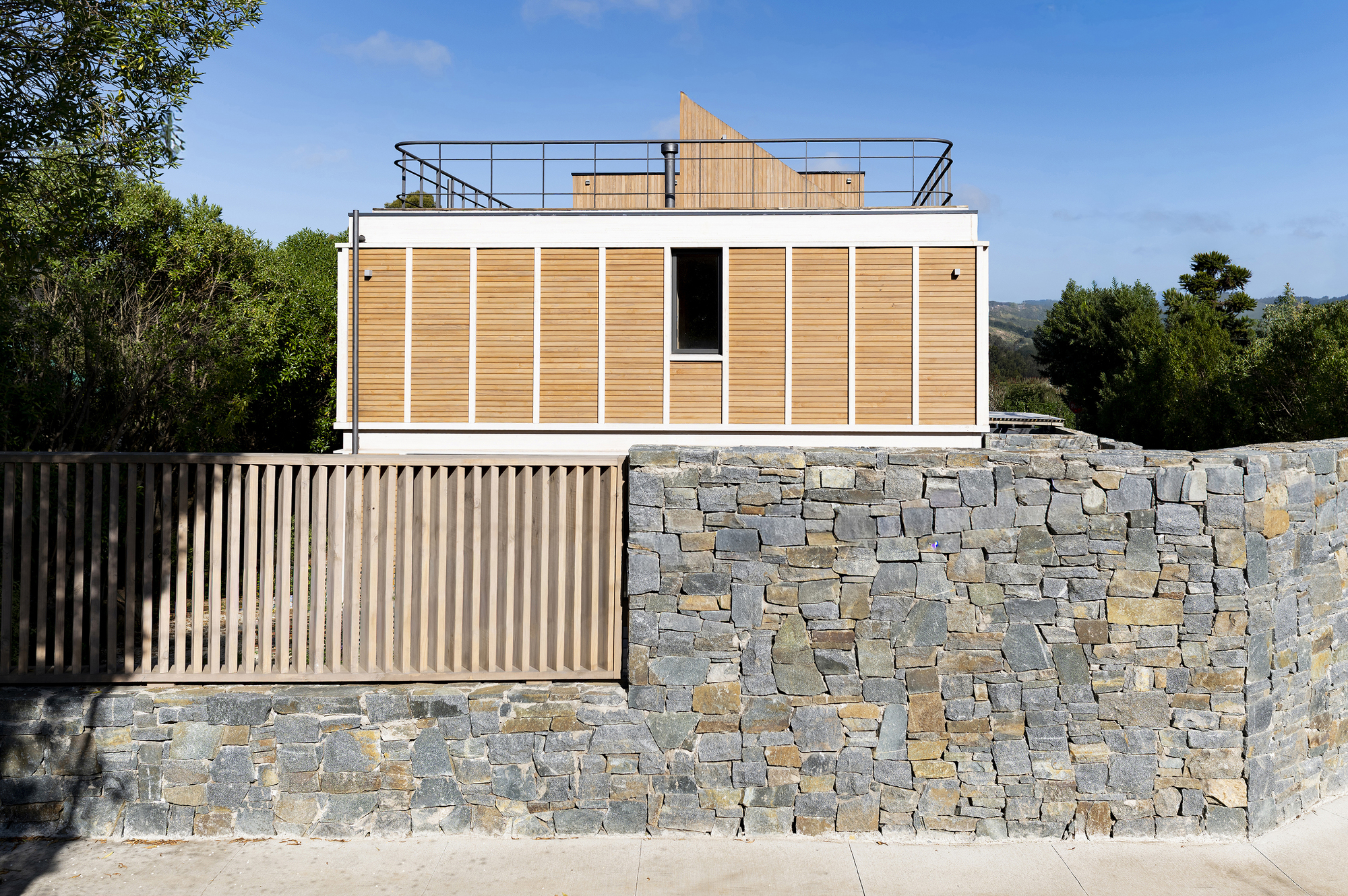 Descrição enviada pela equipe de projeto. O projeto consiste no desenvolvimento de um conjunto de duas casas implantadas em um terreno central e limitado no balneário de Cachagua — condições que orientam tanto a morfologia quanto a composição volumétrica das edificações. Essas características, somadas às restrições normativas, definem a estratégia adotada: maximizar a área útil possível dentro dos parâmetros permitidos, resultando em volumes que respondem diretamente às exigências do lugar.