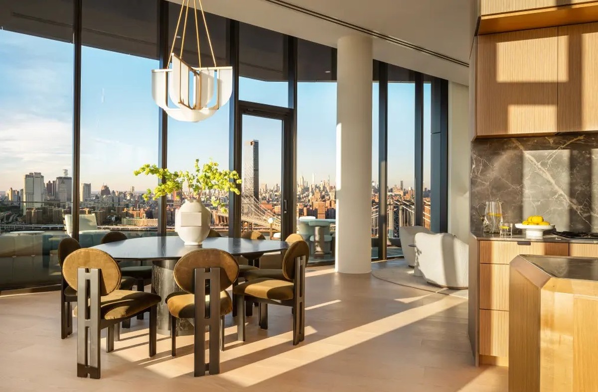 O imóvel ocupa todo o 33º andar do edifício e tem 396 metros quadrados. Com quatro quartos, três banheiros e um lavabo, o apartamento também se destaca pelo terraço privativo de 46 m², com vista para o East River.
