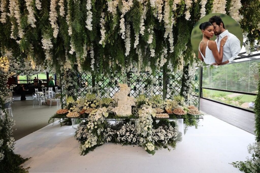 A escolha do local para celebrar a cerimônia foi cheia de significado. “A única condição que estabelecemos era que o casamento acontecesse em um espaço cercado pela natureza, com bastante verde e que lembrasse o clima de fazenda. E, no fundo, sentimos que foi a própria Fazenda Santa Bárbara que nos escolheu. No trajeto até lá, fomos surpreendidos por um caminho lindo, cercado por um bambuzal. Não segurei a emoção e comecei a chorar ali mesmo, porque meu pai — que já não está mais entre nós — trabalhava com móveis de bambu, e aquela paisagem me trouxe uma lembrança muito forte dele”, conta Jakelyne com exclusividade à Casa Vogue.