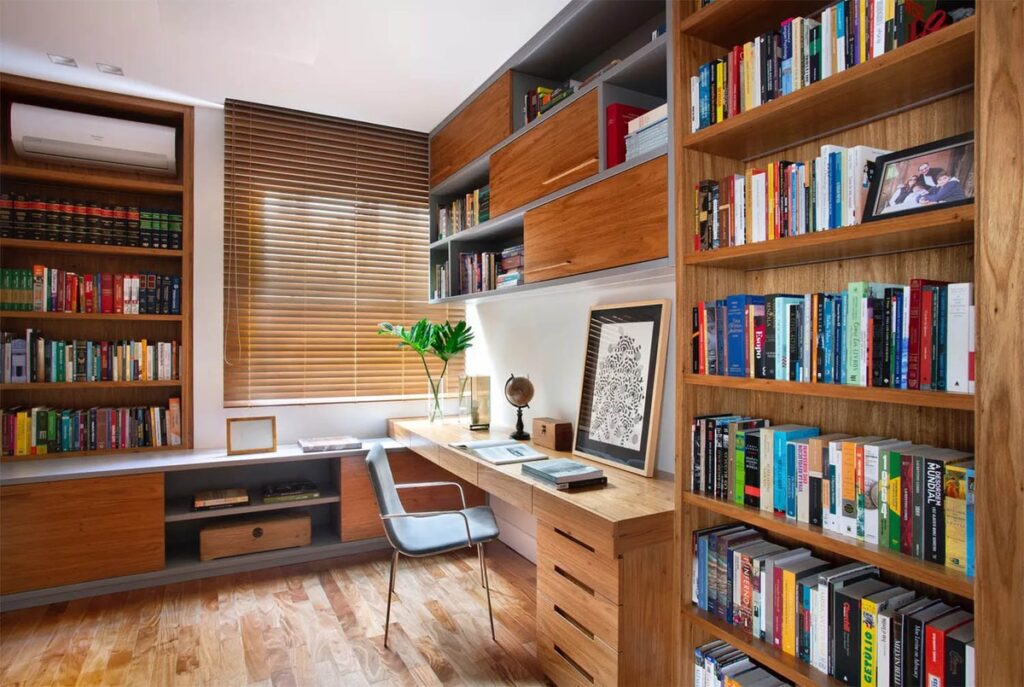 Projetar móveis em alturas adequadas, optar por cadeiras reguláveis, prever profundidade correta da bancada e até calcular a altura dos armários superiores para evitar, por exemplo, bater a cabeça ao levantar, faz parte da aplicação da ergonomia no home office. Porém, o primeiro passo para um espaço de trabalho realmente eficaz está na escolha do local de instalação do home office. “É essencial escolher um local silencioso e iluminado, que favoreça a concentração”, diz a arquiteta Fernanda Rubatino.