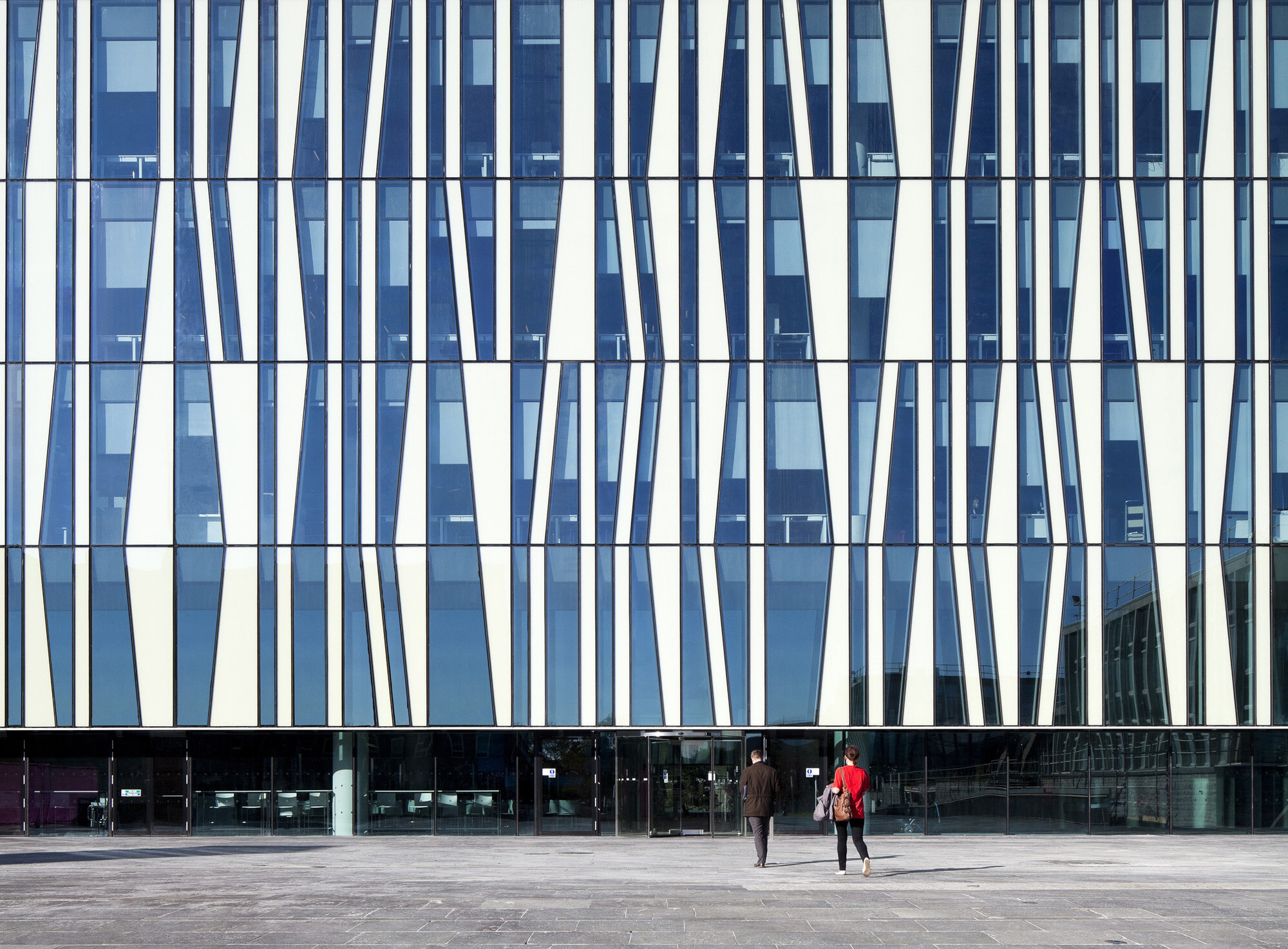 A diferença entre o que se vê claramente e o que apenas se sugere. O transparente expõe; o translúcido preserva a intimidade, mas permite entrada de luz. Na Biblioteca da Universidade de Aberdeen, uma fachada de vidro alterna trechos translúcidos e transparentes, equilibrando visibilidade e privacidade.