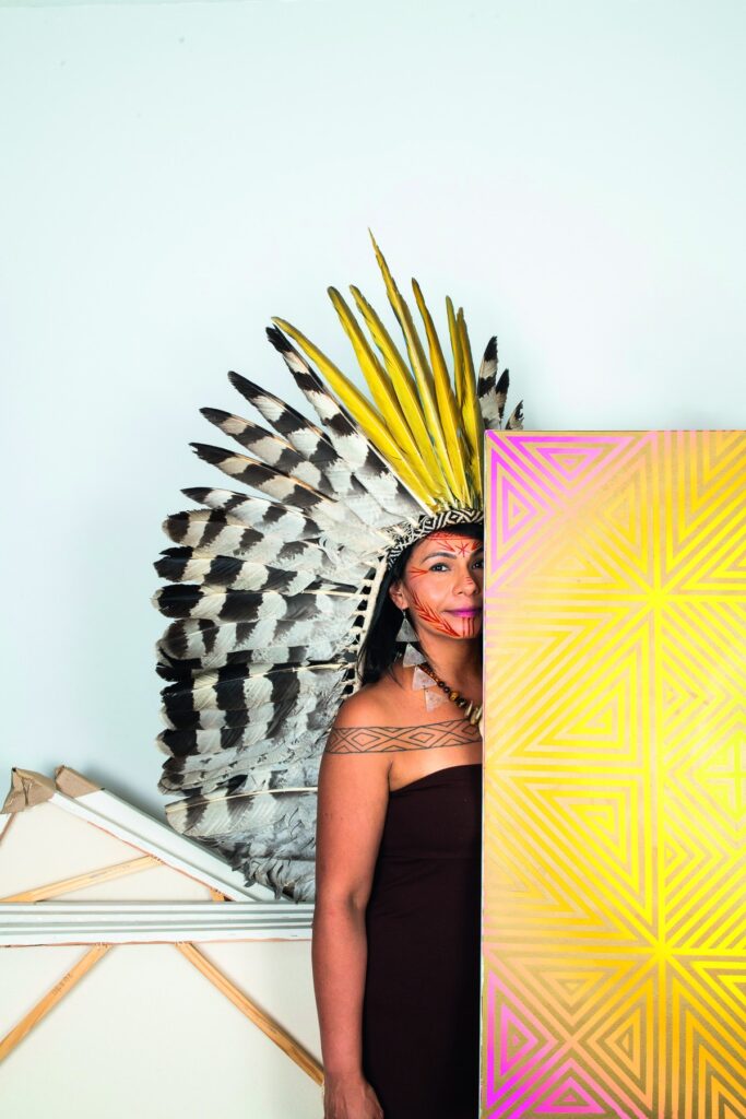 Para entender sua trajetória e suas obras, no entanto, é preciso voltar à sua infância, permeada pela luta indígena. Filha de um dos pioneiros da causa, Álvaro Tukano (ex-assessor de Mário Juruna, primeiro deputado federal indígena do Brasil), e da antropóloga colombiana Alba Figueroa, Daiara nasceu em 1982, em São Paulo, época em que florescia uma articulação nacional de lideranças dos povos originários, fundamental para a conquista de direitos trazidos com a Constituição de 1988. “Mas estávamos em plena ditadura militar, precisei ir morar com minha avó em Palmira, na Colômbia”, lembra a artista, cujas criações circularam recentemente em diversas exposições coletivas, em espaços como as galerias Hayward e Paradise Row, em Londres, além dos principais museus de arte de São Paulo e da participação na 34ª Bienal, ocasião em que sua obra, o manto Kahtiri Ēõrõ – Espelho da Vida, ilustrou um dos cartazes da exibição.