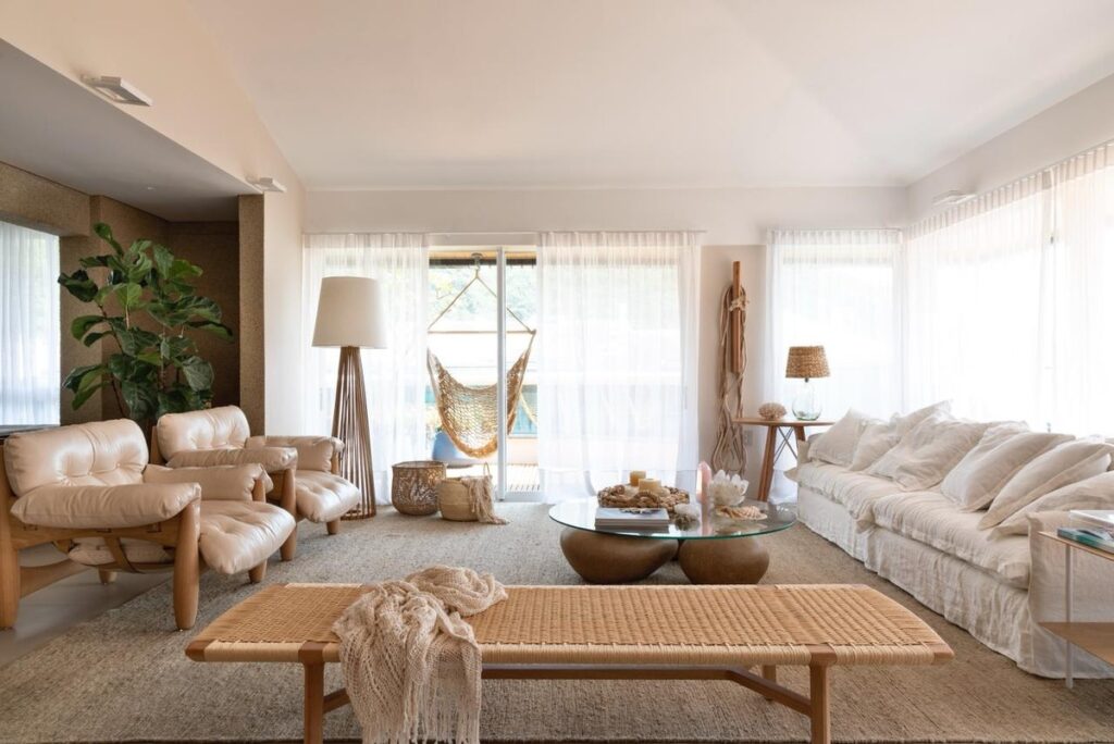 A harmonia está no contraste: superfícies lisas com rústicas, opacas com brilhantes, frias (como o mármore) com quentes (como a madeira). “Uma textura lisa, como o couro, pode se equilibrar com uma trama mais rústica, como a palha. Não há uma regra fixa”, observa Juliana. As texturas naturais, como madeira e linho, trazem calor e acolhimento, enquanto as sintéticas oferecem tecnologia e praticidade. “Misturar o que vem da natureza com o que é feito pelo homem torna os ambientes mais autênticos e cheios de essência”, complementa. Para não errar e sobrecarregar o ambiente, a dica é trabalhar com até três texturas principais em cada espaço.