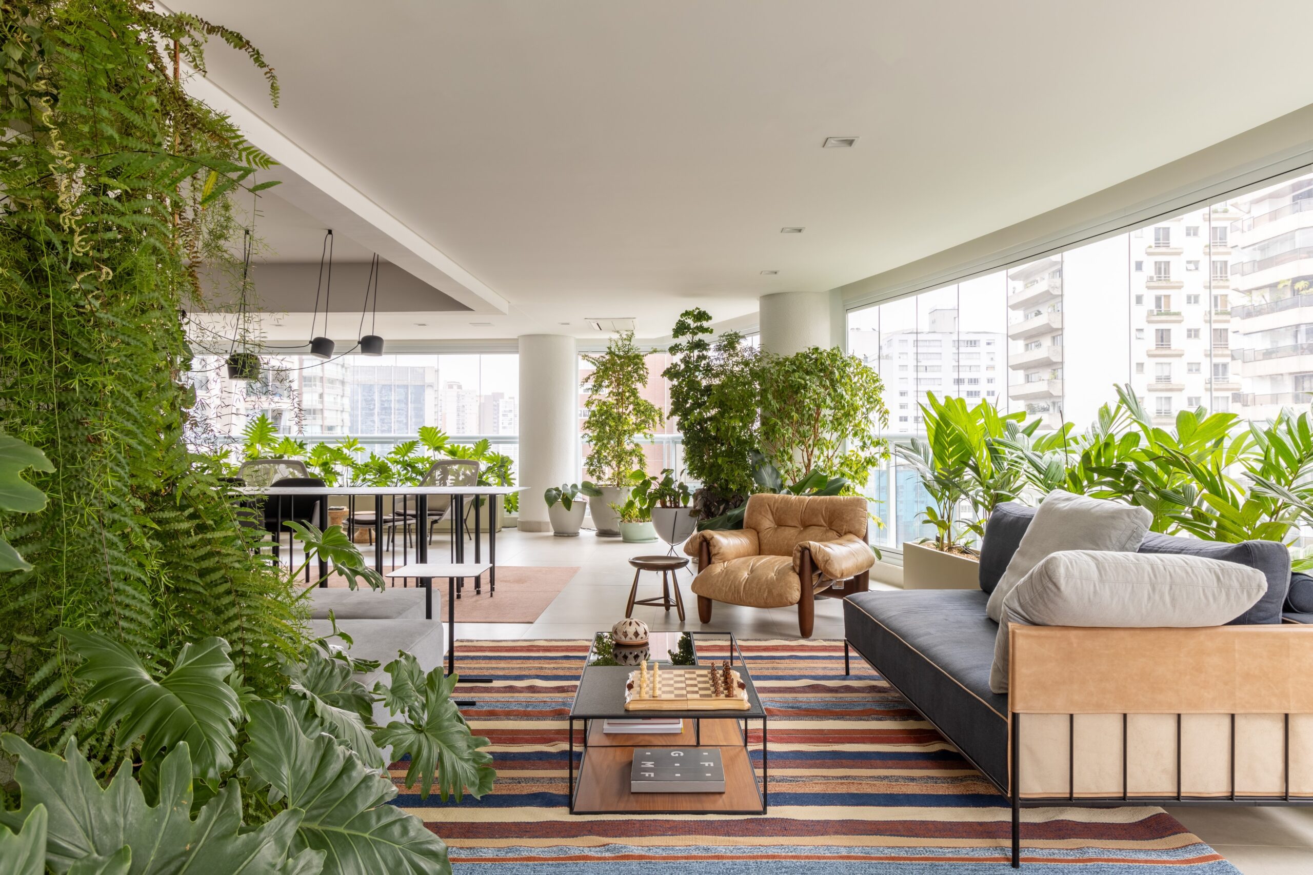 Nesse sentido, abajures, luminárias de piso e até arandelas ajudam a equilibrar a estrutura de iluminação central, criando camadas e pontos de interesse no ambiente. Luzes mais baixas modelam volumes, destacam texturas e contribuem para uma sala mais acolhedora. Esses elementos ajudam a formar conjunto mais completo e flexível, permitindo que cada canto da sala tenha uma função e uma atmosfera próprias. “Eles modelam o espaço e conduzem o olhar”, comenta a arquiteta Daniela Funari.