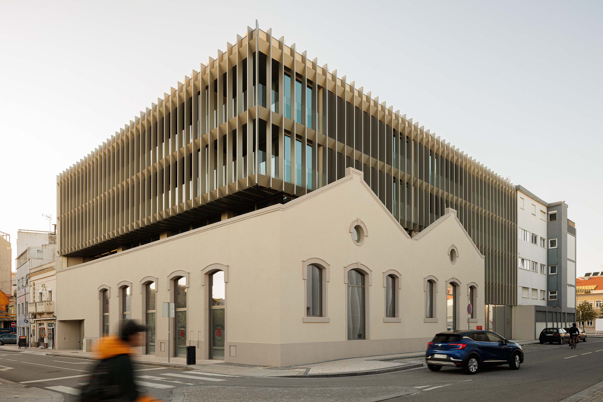 Originalmente o conjunto era constituído por dois armazéns industriais desactivados e um logradouro lateral. Tratando-se de dois armazéns industriais do início do século XX, com desenho de alçado idênticos. O alçado principal das construções (alçado rua Dr. Arlindo Vicente) possui uma linguagem arquitectónica característica dos edifícios industriais da época, ritmado por janela – porta (com soleira elevada) – janela e janela circular a eixo da porta. Considerando-se que a preservação e integração das fachadas existentes valorizou a nova construção preservando uma memória distante do antigo carácter da zona.