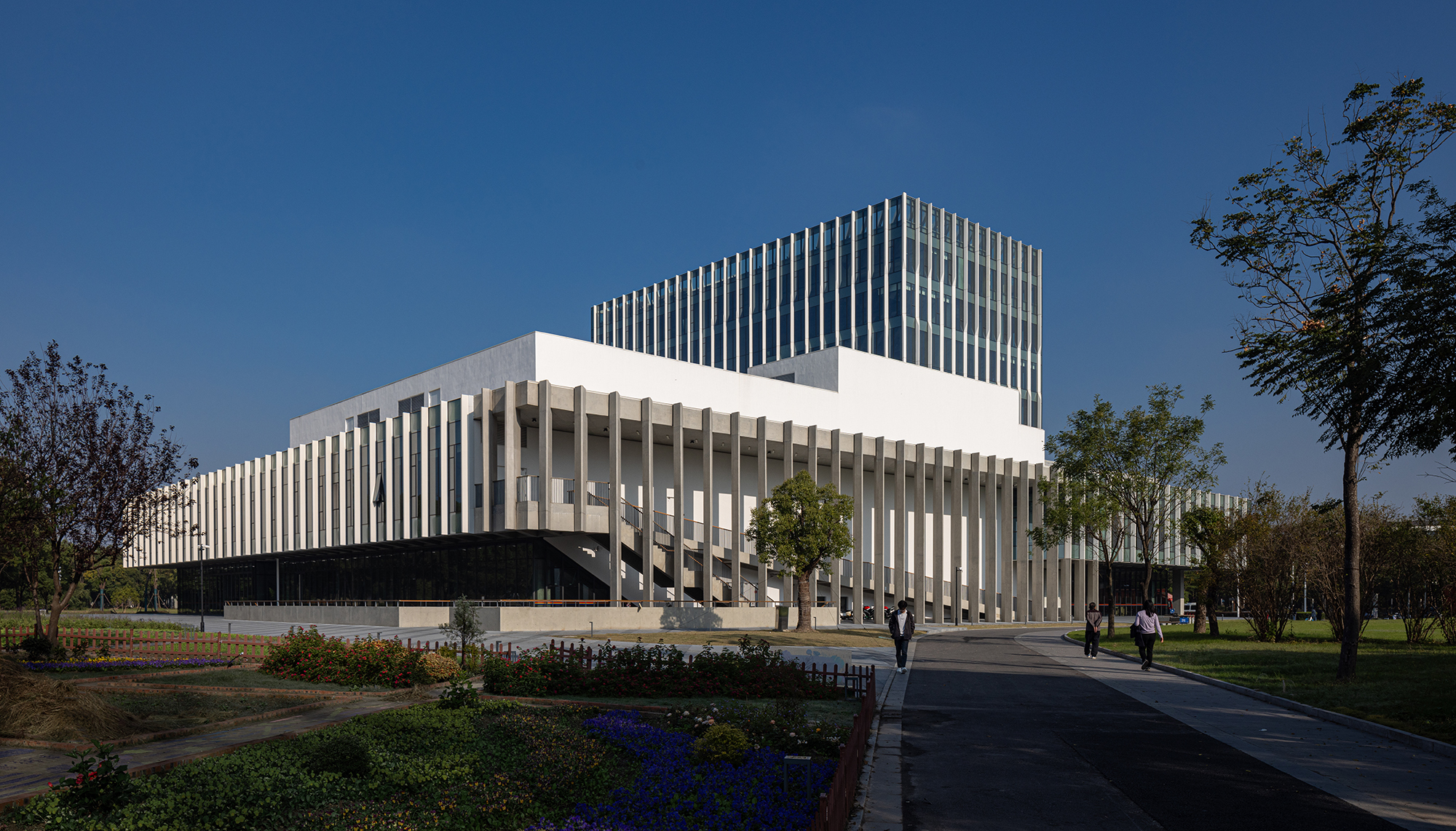 Localizada na extremidade sudeste do campus, entre a área acadêmica e os dormitórios, e voltada para o gramado à beira do lago ao sudoeste, a Casa Yijia combina volumes de 2 e 9 pavimentos, transformando-se em um marco visual no lado leste do eixo de entrada sul, em diálogo com a biblioteca situada a oeste. O projeto parte do conceito de “percorrer um campus vertical”, conectando o subsolo ao jardim na cobertura por meio de espaços tridimensionais como rampas, escadas e passarelas, criando uma sequência espacial contínua, semelhante a um jardim chinês, com cenas em constante transformação conforme o deslocamento.