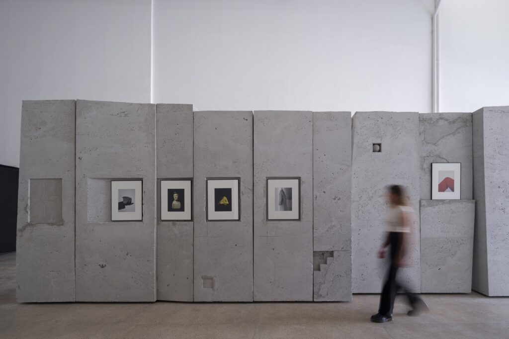 A busca projetual consiste em gerar uma parede que não seja apenas um dispositivo de montagem, mas que faça parte da obra em conjunto com as fotografias.