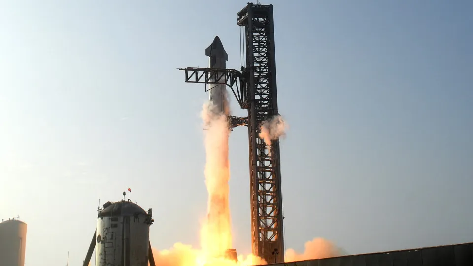 Após o lançamento do foguete, o propulsor Super Heavy e a Starship, esta última que dá nome a todo o sistema, se separaram.