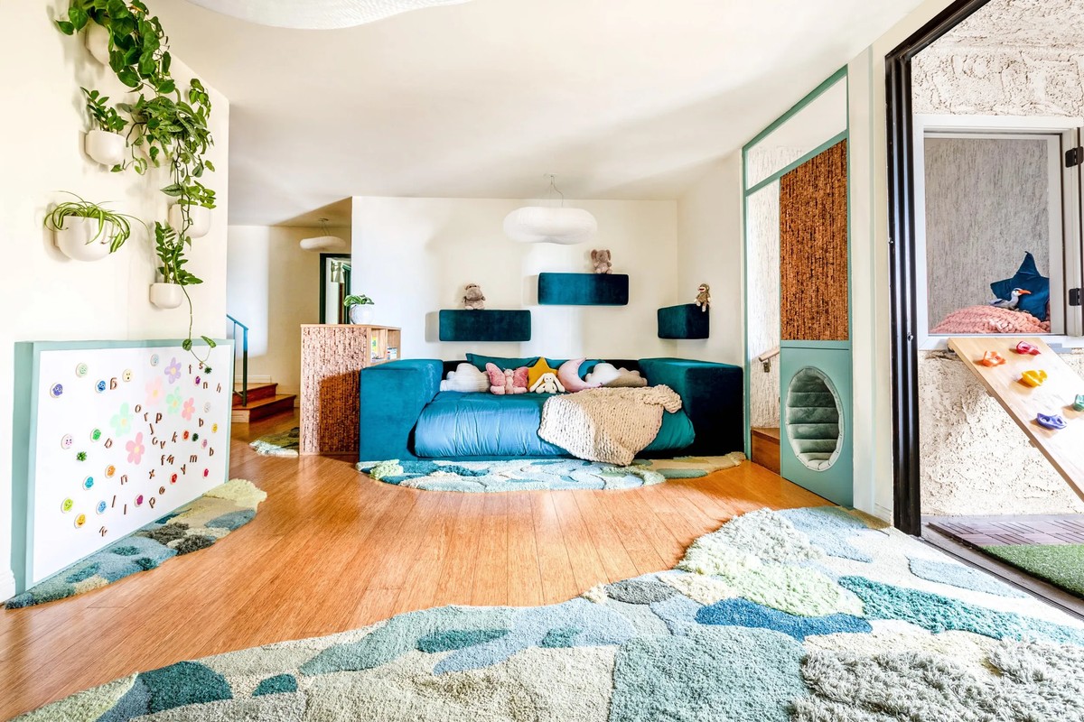 As salas sensoriais também podem ser menores, com um único elemento-chave desempenhando um papel fundamental. Para a sala sensorial de uma criança, Alecia Taylor, designer de interiores da CabinetNow, ajudou a criar armários sob medida para oferecer amplo espaço de armazenamento para ferramentas sensoriais, brinquedos e materiais calmantes em um só lugar prático. “O aquário embutido nos armários foi um recurso único, inspirado na sala sensorial do aeroporto de Newark”, ela diz. “Era uma presença calmante e uma fonte de estímulo visual e auditivo de forma suave.”A iluminação ajustável foi incorporada para dar à família controle sobre a atmosfera do ambiente, o que ajudou o espaço a atender às necessidades sensoriais da criança.