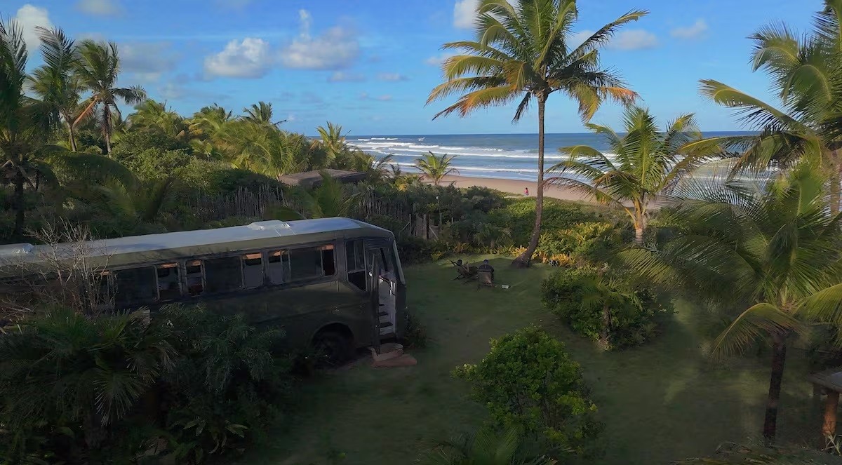 Um ônibus-casa ganhou interiores repaginados para receber hóspedes no Sítio Pura Vida, localizado na Praia dos Arandis, em Maraú, no litoral sul da Bahia. Completamente reformado em 2025, o veículo fica estacionado em uma propriedade de 5.000 m² com natureza preservada com fauna e flora exuberante.