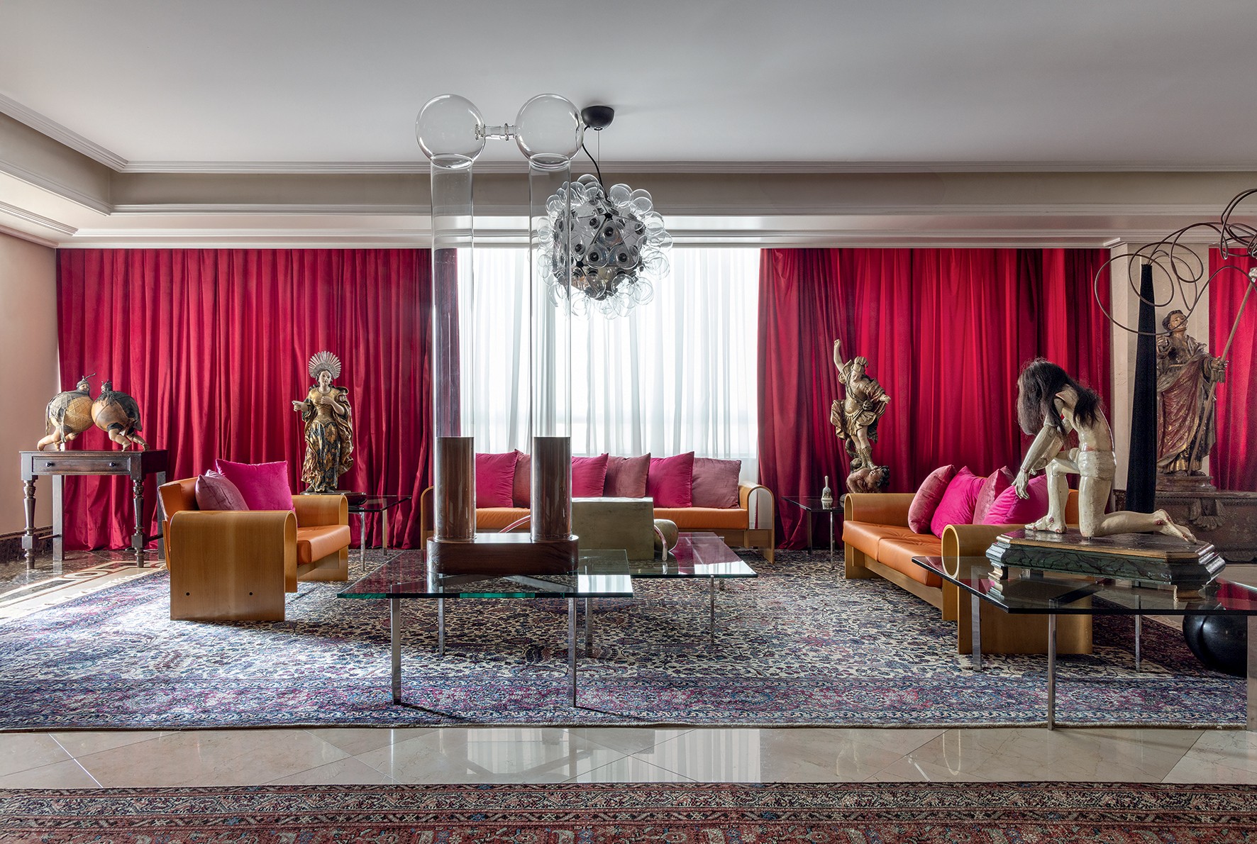 Tão irreverente quanto seu morador, o apartamento-museu do célebre editor Charles Cosac surpreendeu as redes sociais com sua estética original. Com mais de 14 mil curtidas no Instagram, o dúplex de 1,1 mil m² em Higienópolis é composto por centenas de livros, uma coleção de arte que cruza estátuas barrocas com nomes contemporâneos, e a cor vermelha. “Adorei conhecer o apartamento de Charles Cosac. Muito bom gosto, ousadia e autenticidade!”, comentou um seguidor.