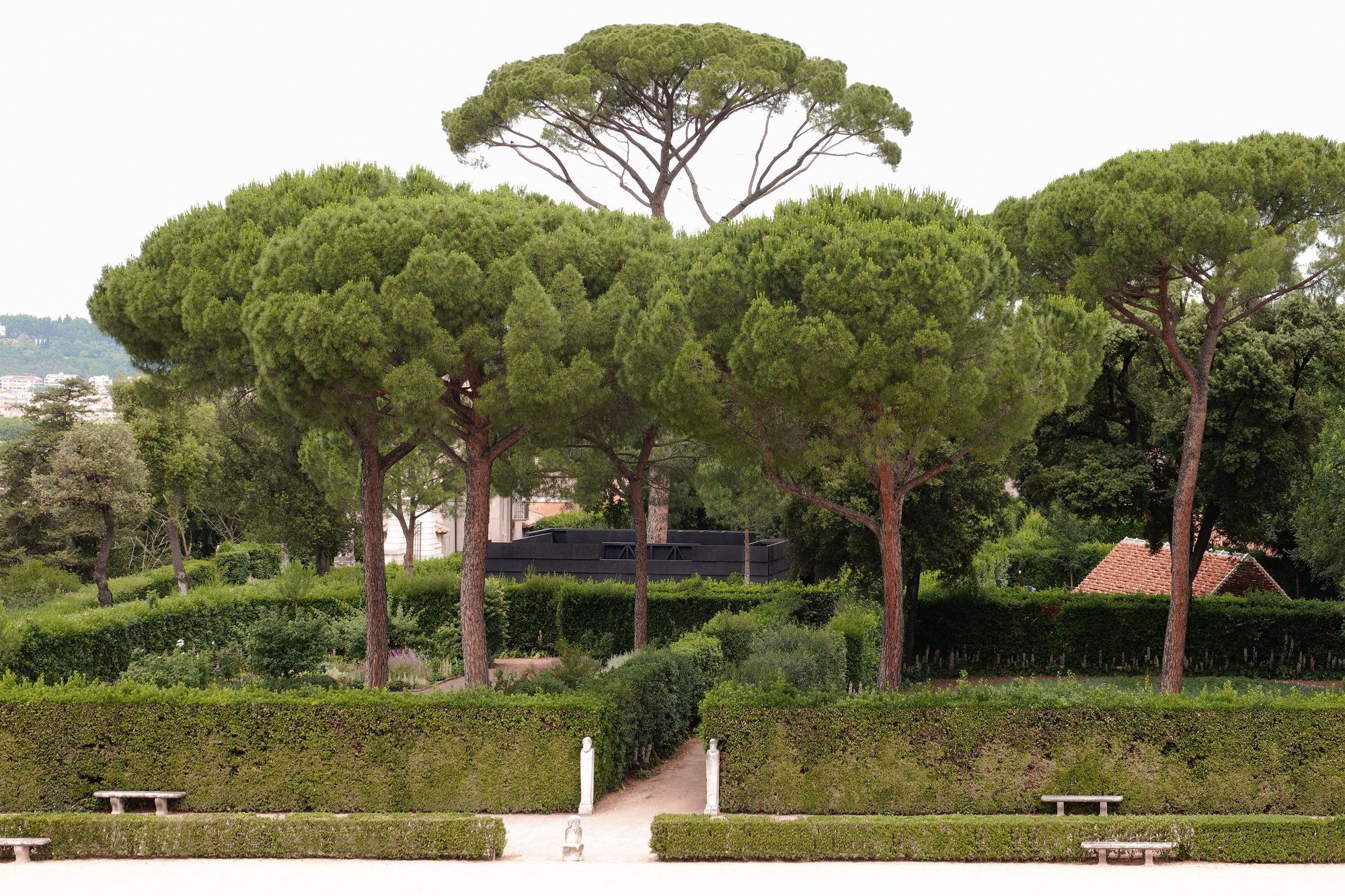Ao longo de todo o perímetro, o projeto é pontuado por uma série de aberturas que criam relações poéticas com o ambiente ao redor: em alguns casos, emoldurando vistas da cidade de Roma, em outros, vislumbres da Villa Medici, e em outros ainda, do antigo pinheiro ou dos elementos naturais do jardim.