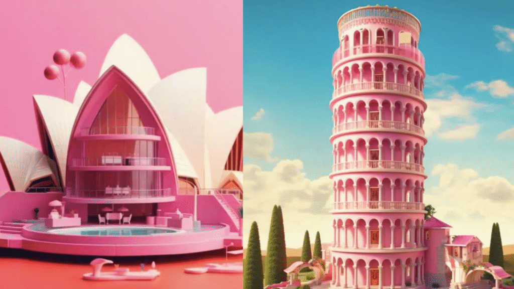 Dessa vez, a empresa britânica de conservatórios, ConservatoryLand, se uniu à agência Jellyfish, para recriar 13 pontos turísticos icônicos de todo o mundo no estilo da boneca Barbie, usando a plataforma de IA generativa Midjourney.