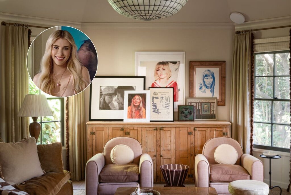 Pelas fotos do anúncio, é possível observar a personalidade de Emma na decoração. Na convidativa sala de estar, por exemplo, fotografias emolduradas das cantoras Debbie Harry e Joni Mitchell estão à mostra.