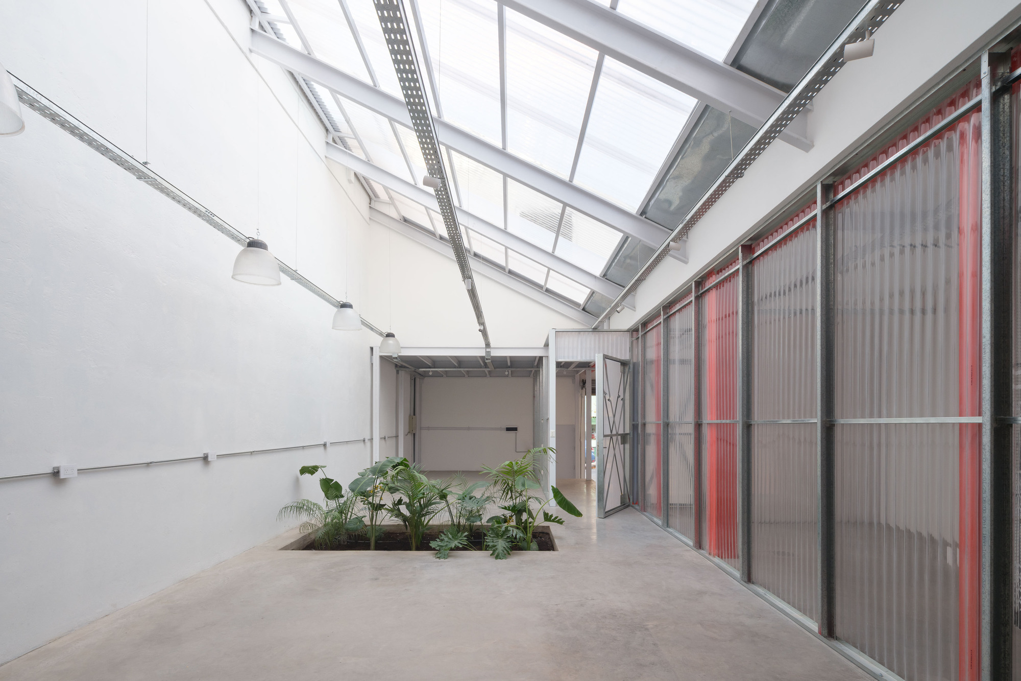 Decidiu-se pintar de vermelho os reforços estruturais para que ganhassem protagonismo e mantivessem viva a presença estrutural característica das fábricas. Além disso, conserva-se o elevador de carga, que colabora com a organização das circulações.