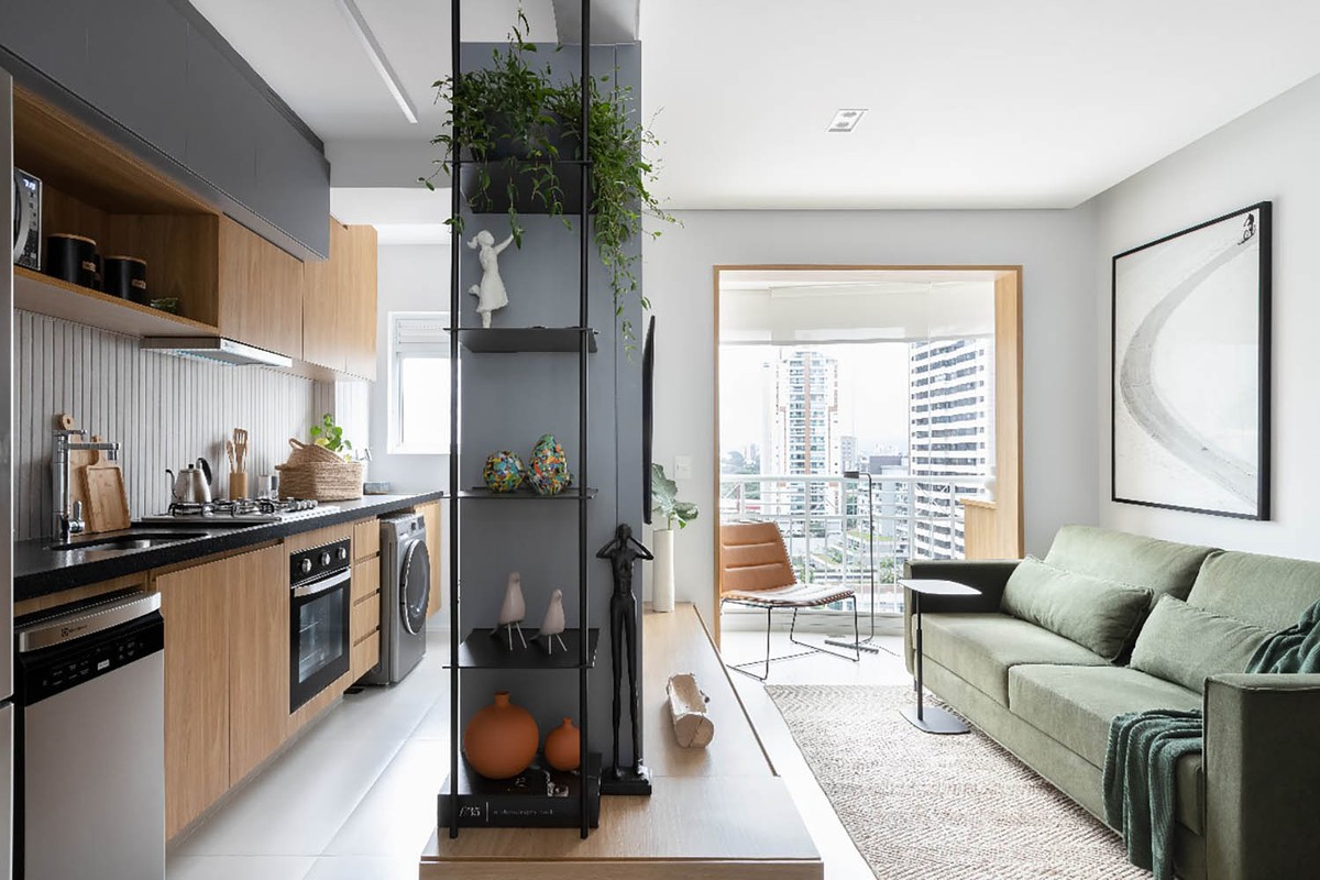 Ainda sobre o assunto, é comum que cozinhas pequenas tenham a iluminação natural comprometida, em alguns casos, nem possuam janelas. Para estes casos, a arquiteta Thaís Monfré, do Studio Monfré, dá a seguinte dica: “Caso a única fonte de luz natural venha de uma lavanderia próxima, por exemplo, é importante utilizar uma divisória de vidro ou algum elemento vazado que possibilite a passagem de iluminação, evitando a obstrução total quando os ambientes estiverem fechados.”