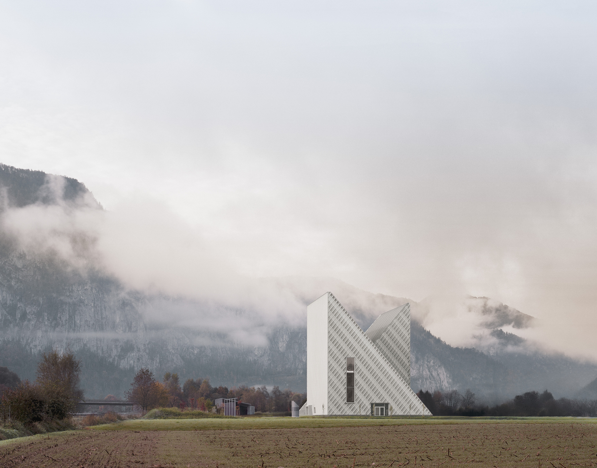 Uma volumetria simples, abstrata e um tanto enigmática, que através de sua geometria e abstração, busca estabelecer uma relação com a paisagem forte o suficiente para se tornar parte dela, uma relação onde a arquitetura não hesita em ter seu próprio significado e sua própria identidade.