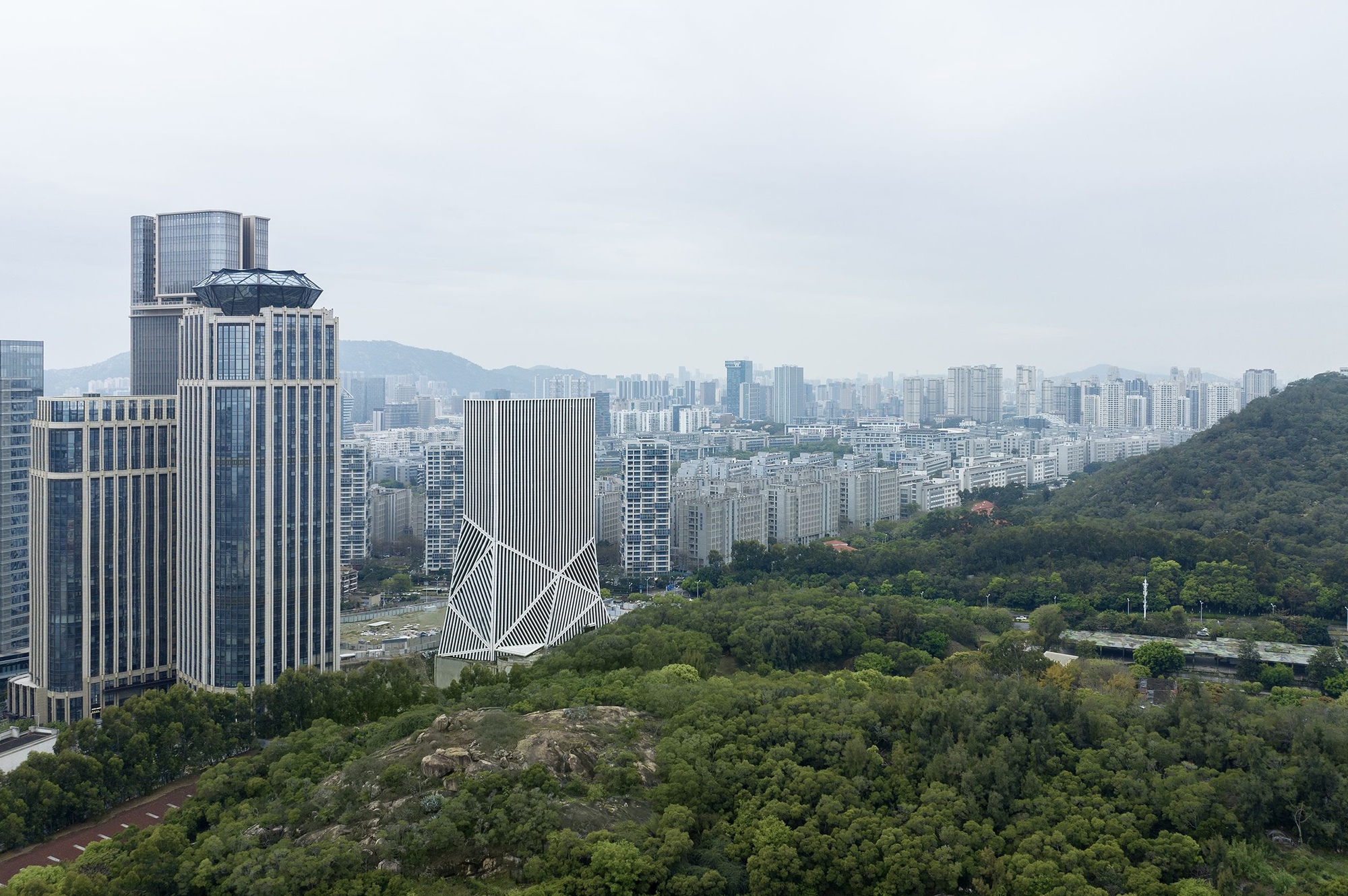 Descrição enviada pela equipe de projeto. A sede da JOMOO, o primeiro campus corporativo da maior fabricante de louças sanitárias da China, está localizada no distrito central de negócios de Xiamen. Inserido entre densos arranha-céus e colinas arborizadas, o edifício reflete a coexistência entre natureza e urbanização que caracteriza a paisagem desta cidade insular.